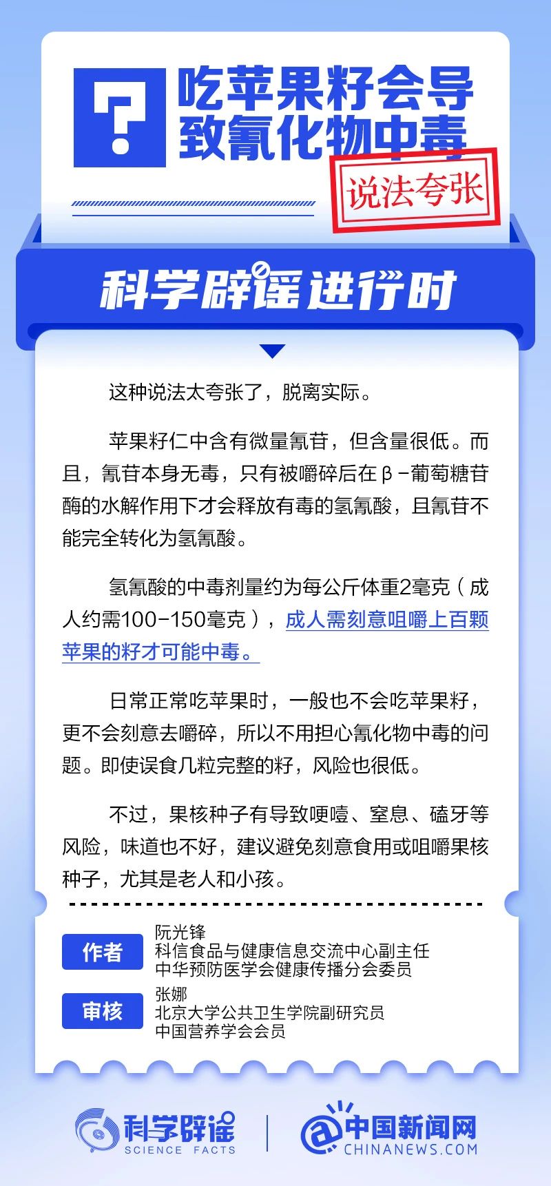 吃苹果籽会导致氰化物中毒?