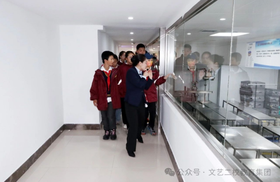 探秘透明厨房 共筑校园食品安全防线——文艺二校新宁小学学生代表走进诚真餐饮公司。